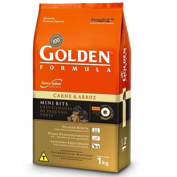 Ração Golden Formula Mini Bits Carne e Arroz Filhotes 1 kg